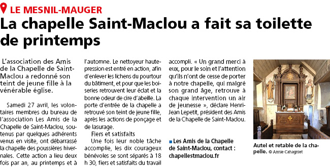Extraits de presse sur l’Association les Amis de la Chapelle de Saint-Maclou