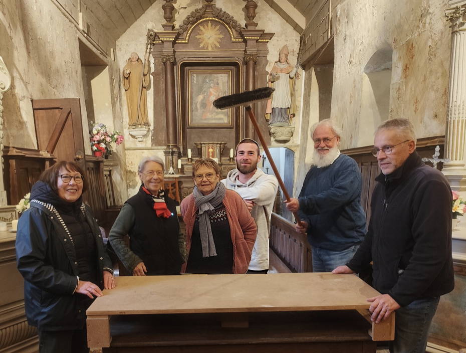 A big thank you to Annie, Chantal, Paulette, Christopher, Éric, and Hervé who, on Saturday, November 29th, dedicated their time to tackling the dust and various insects that had taken up residence in our chapel.