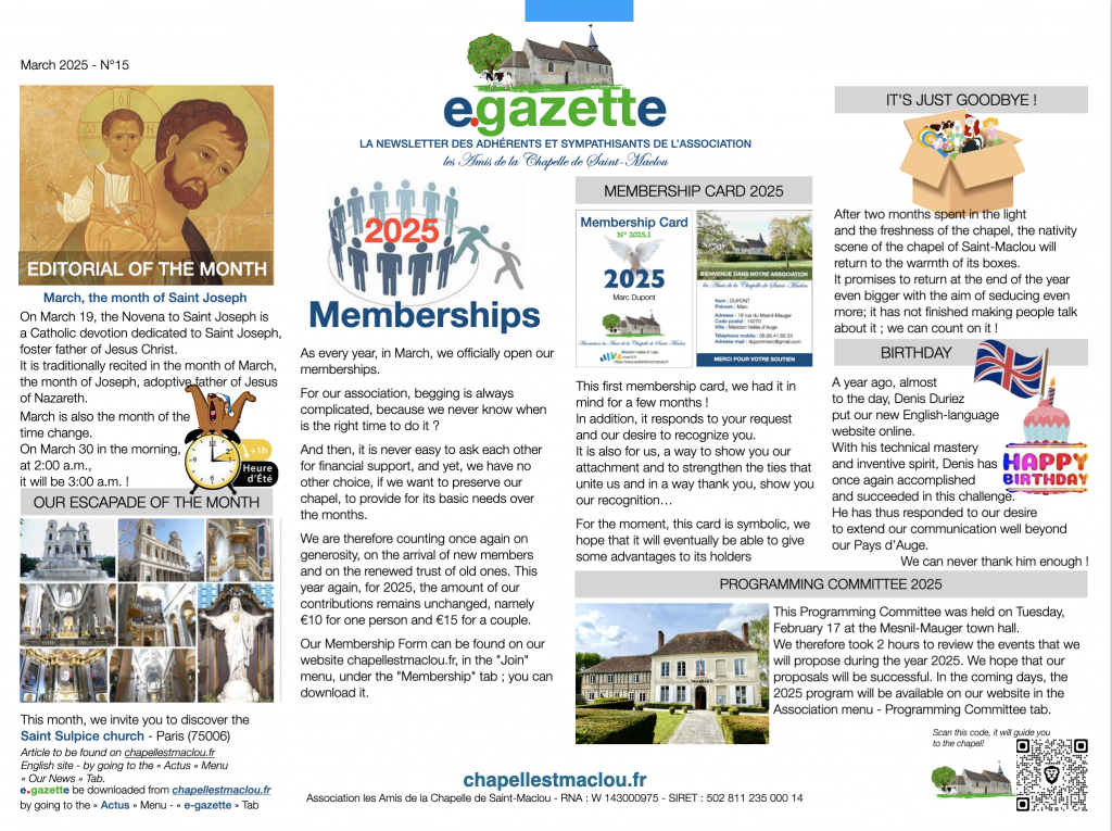 e●gazette aspires to meet our need for contact and will allow you to be as close as possible to the activity of our association,