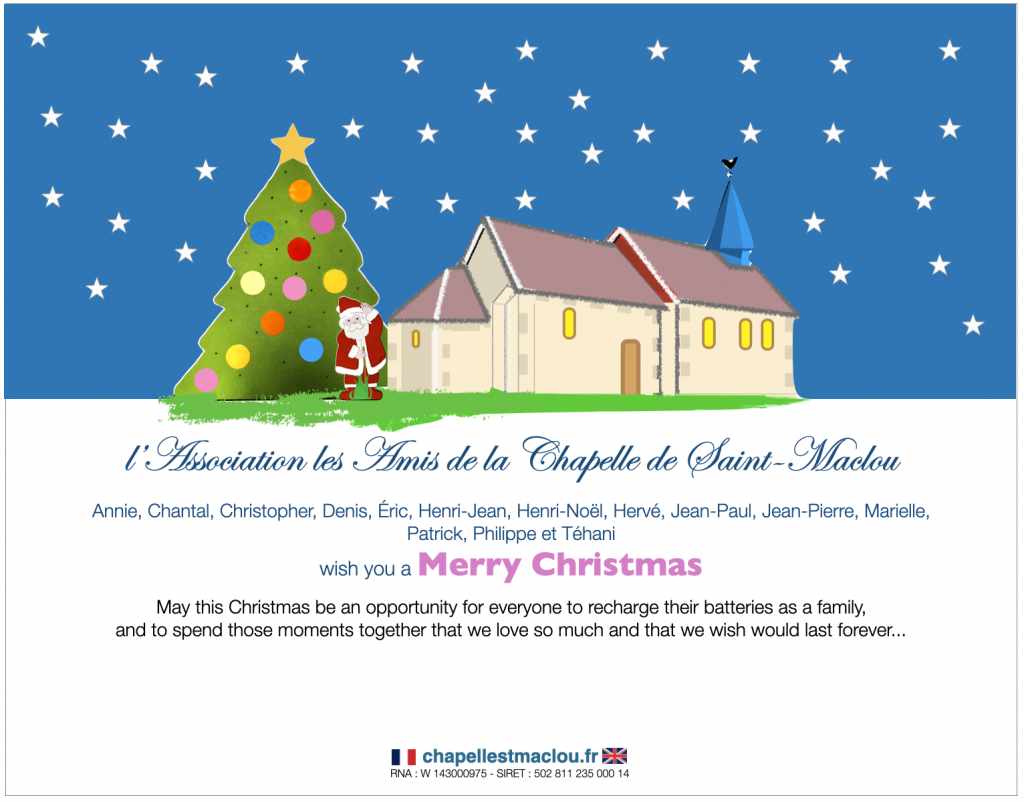 2025decMERRY CHRISTMAS 2025For young and old, may Christmas dreams come true and may the celebration be wonderful !Month Long Event (december) Chapelle de Saint-Maclou, Route de Saint-Maclou Le Mesnil-Mauger 14270 MÉZIDON VALLÉE D'AUGE