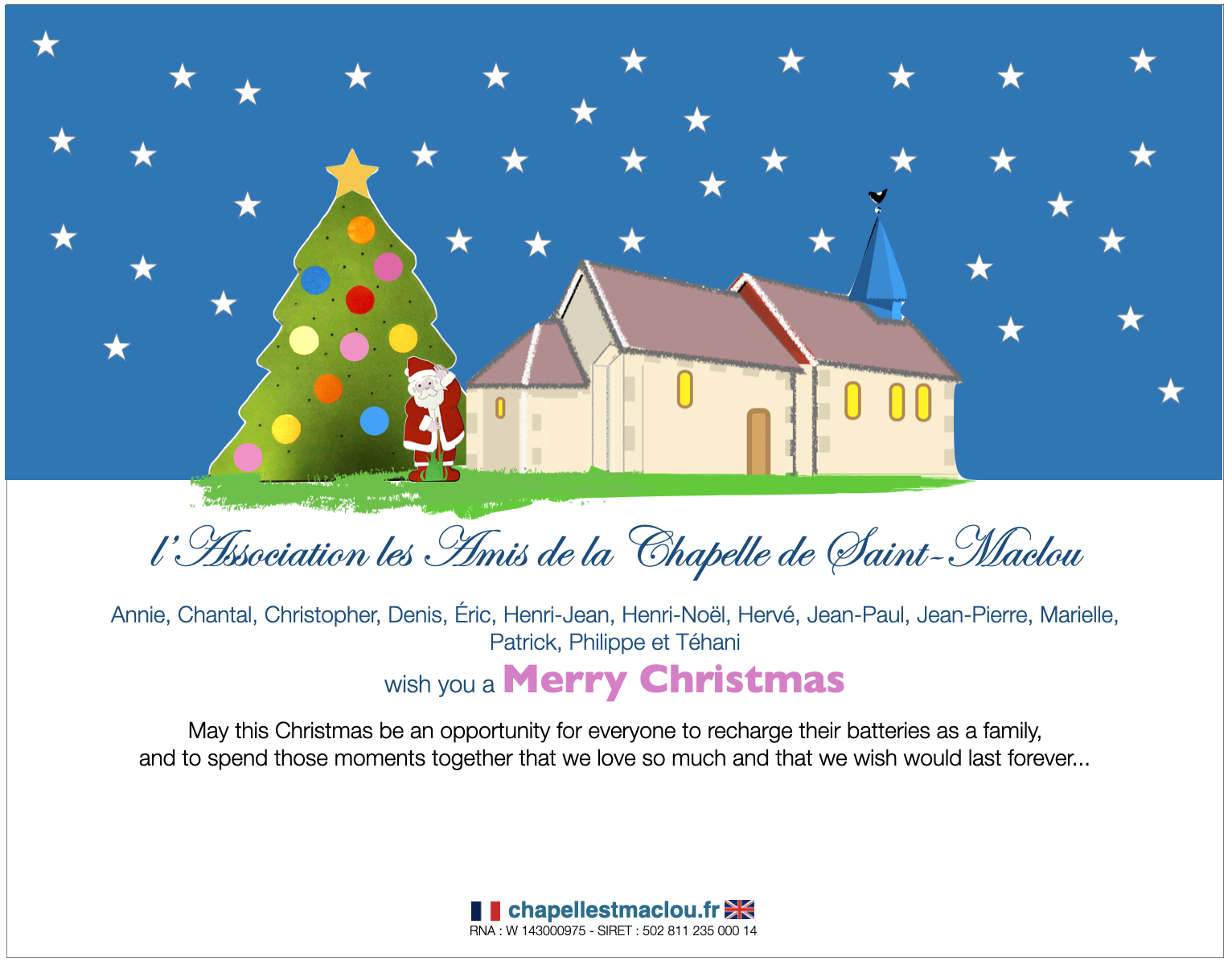 2025decMERRY CHRISTMAS 2025For young and old, may Christmas dreams come true and may the celebration be wonderful !Month Long Event (december) Chapelle de Saint-Maclou, Route de Saint-Maclou Le Mesnil-Mauger 14270 MÉZIDON VALLÉE D'AUGE